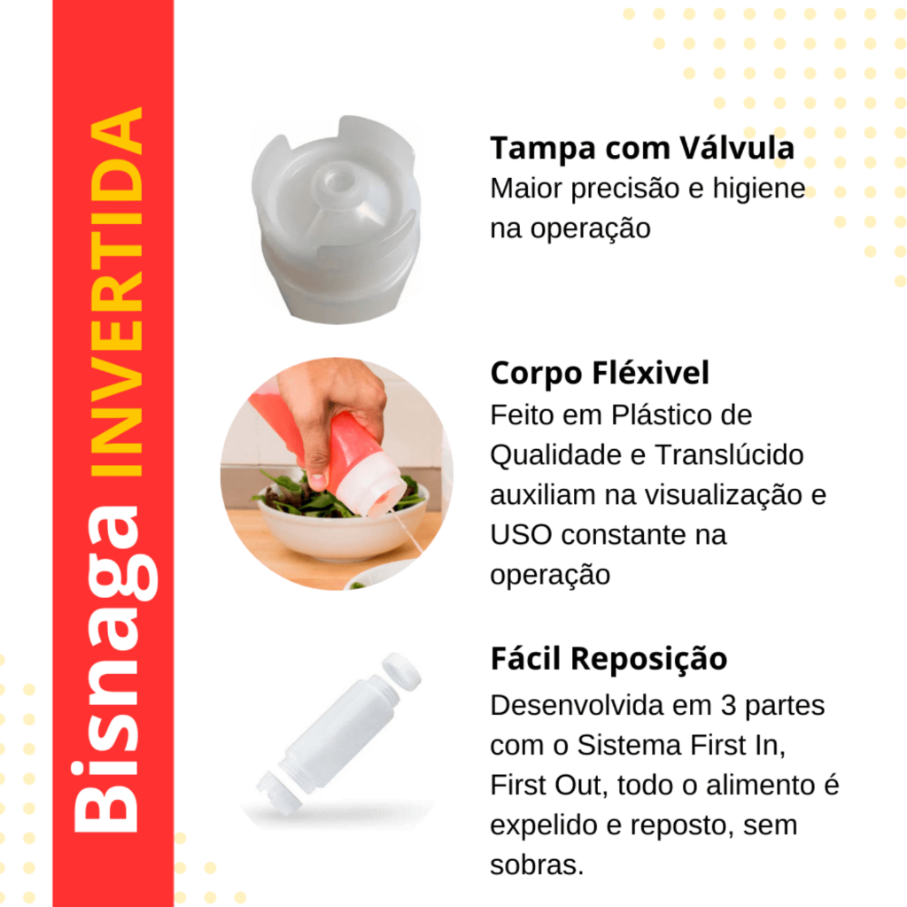 Kit 2 Bisnagas para Molho Invertida 590ml 20Oz Calda TIPO FIFO HAMBURGEURIA BAR HOTEIS E RESTAURANTE