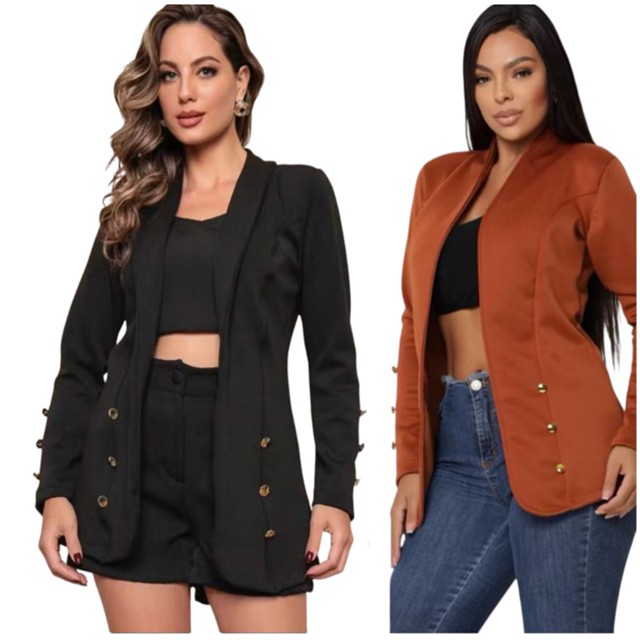 | KIT 2 Blazer Social Liso Botões Alongado Feminino Acinturado Neoprene este produto | R$ 80,99 | 19% | 4.9/5 | 103 |