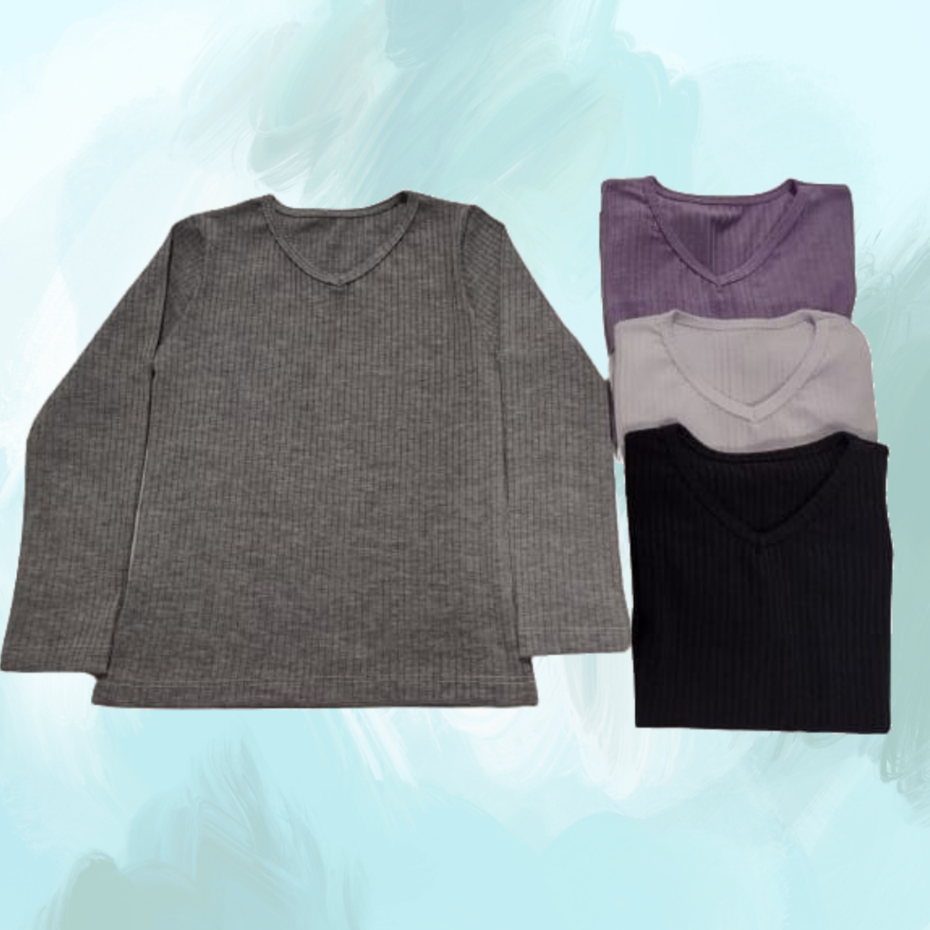 kit 2 blusa básica gola V infantil FEMININA canelada manga LONGA moda inverno para meninas