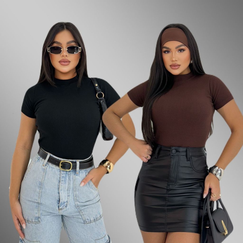 KIT 2 Blusa Básica Ribana Canelado Premium Casual Moda Gringa Basico Camiseta T-Shirt
