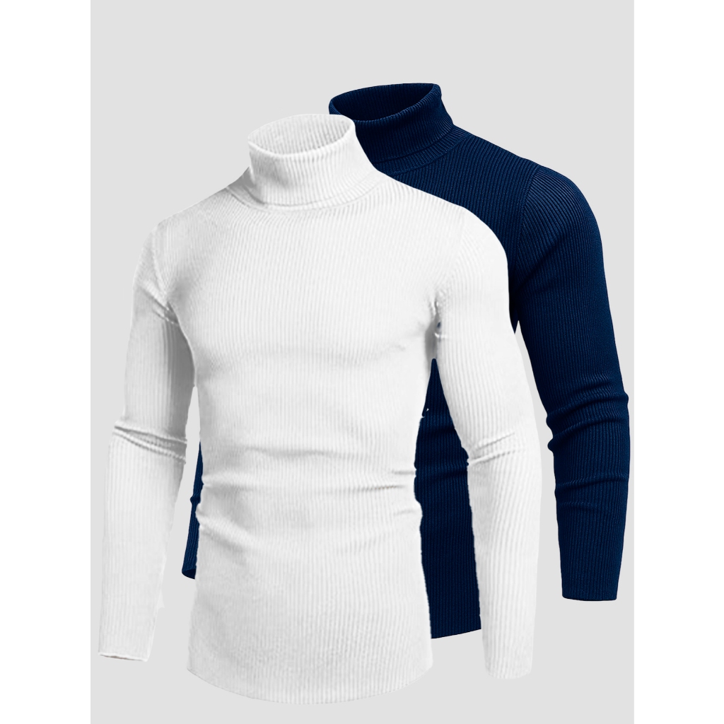 Kit 2 Blusa Cacharrel Sueter Masculina Canelada Gola Alta