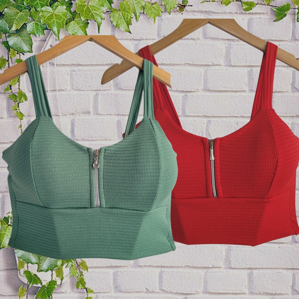Kit 2 Blusa Cropped Feminino Top Zíper Estilo Corselet Com bojo