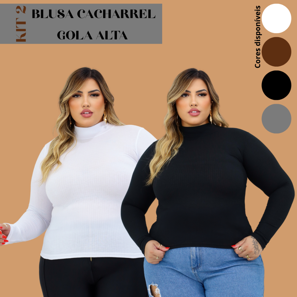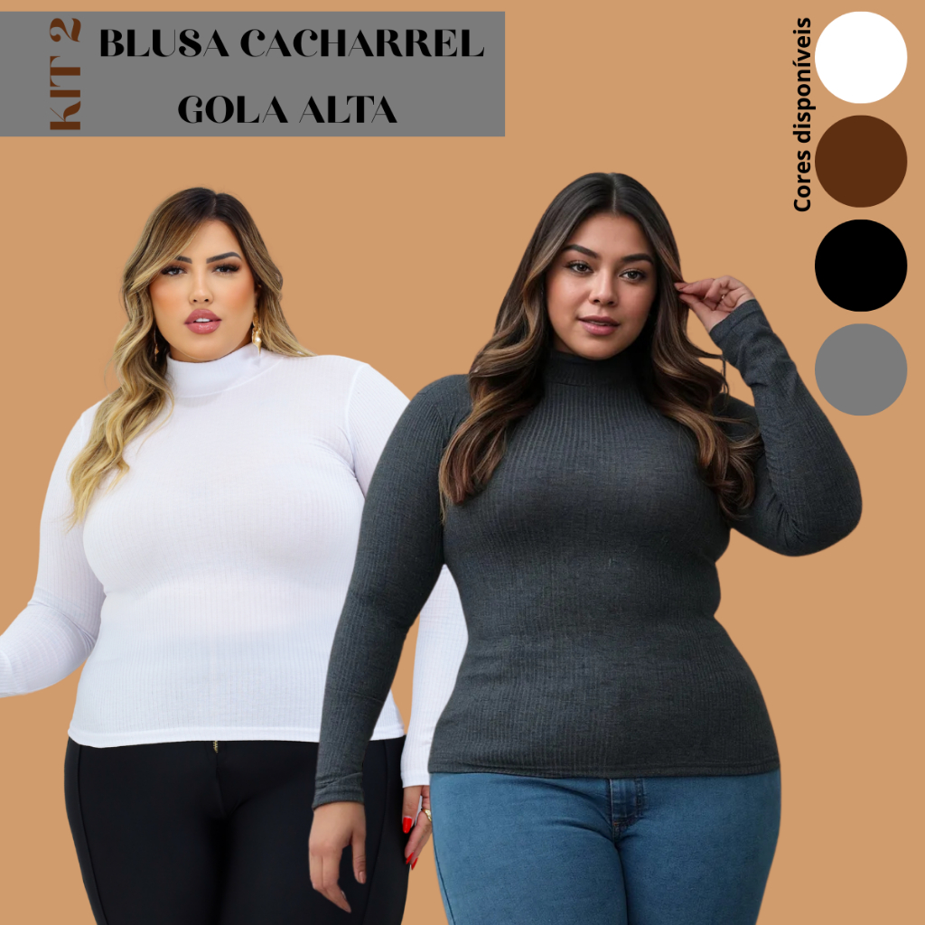 Kit 2 Blusa De Frio Feminina Cacharrel Gola Alta XG Plus Size Canelada Premium Segunda Pele Manga Longa Elegante