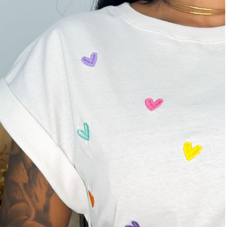 Kit 2 Blusa Feminina Coração Colorido Japonesa 100% Algodão