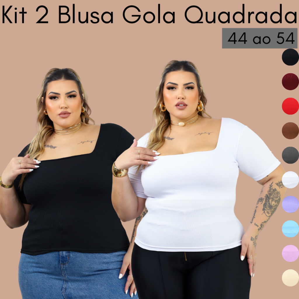 Kit 2 Blusa Feminina Plus Size Estilosa Elegante decote quadrado curve verão blusas curvy plus sise