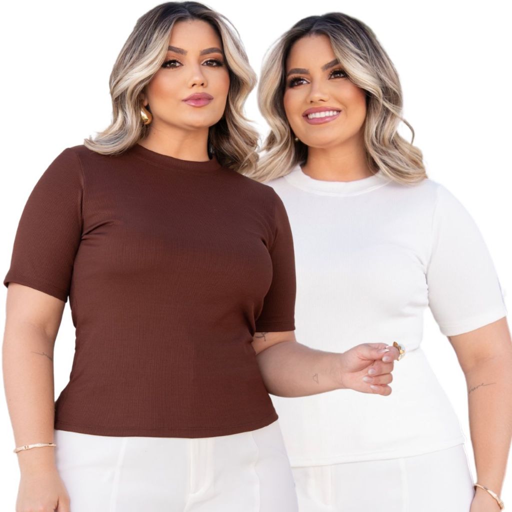 Kit 2 Blusa Feminina Plus Size Uniforme T-Shirt Ribana Leve e Confortável G3
