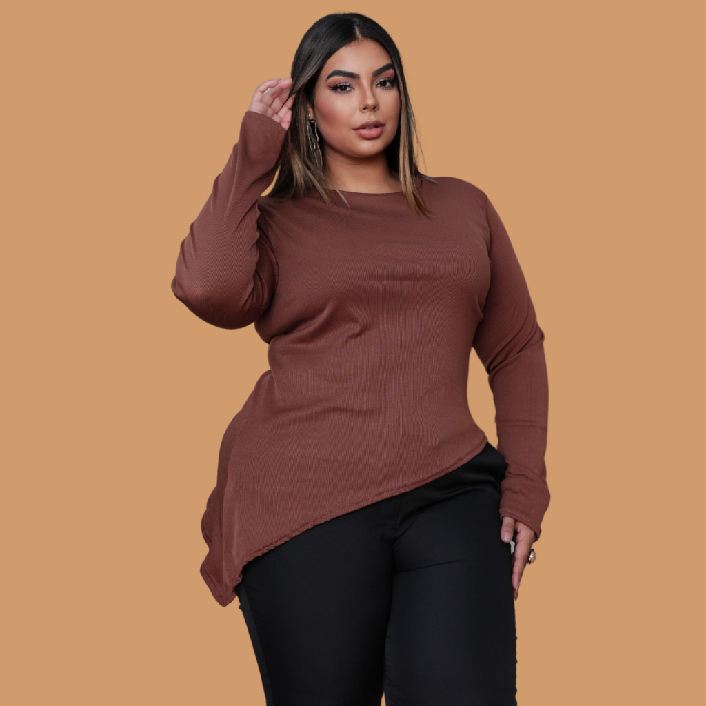 Kit 2 Blusa Assimétrica Plus Size em Ribana – Manga Longa e Gola Redonda Essas blusas são a escolha perfeita para quem busca conforto e estilo no dia a dia! Confeccionada em tecido ribana de alta qualidade (97% poliéster e 3% elastano), ela oferece um caimento leve e confortável que valoriza o corpo com elegância. Com modelagem plus size, a blusa tem detalhe assimétrico na barra, manga longa e gola redonda clássica. O toque macio do tecido proporciona liberdade de movimentos e bem-estar o dia todo. Disponível em 5 cores versáteis, é uma peça essencial para compor looks modernos e práticos – seja com jeans, legging ou até uma saia estilosa.