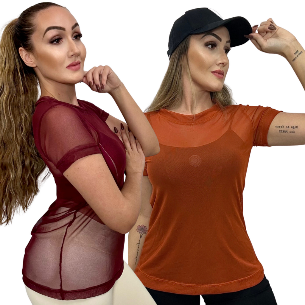 Kit 2 Blusas Academia Caminhada Treino Corrida no Tulê Fresquinha Leve Envio Imediato 24h