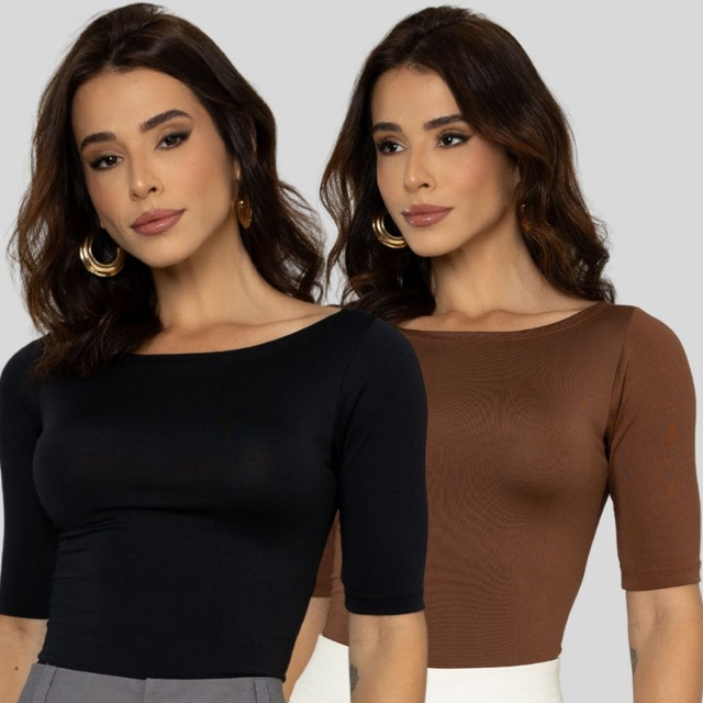 Kit 2 Blusas Feminina BabeTee Gola Canoa Manga 3/4 Trabalho Dia a Dia