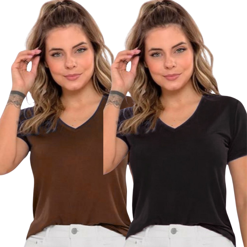 Kit 2 Blusas Feminina Camiseta Gola V Viscolycra T Shirt Estilosa - Camisa Básica com Caimento Perfeito