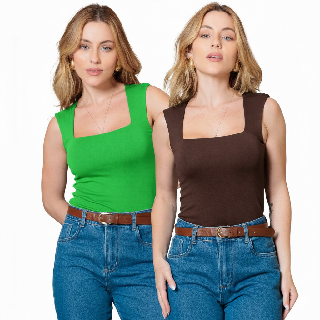 Kit 2 Blusas Regata Feminina Decote Quadrado Verão 2026 Moda Blogueirinha