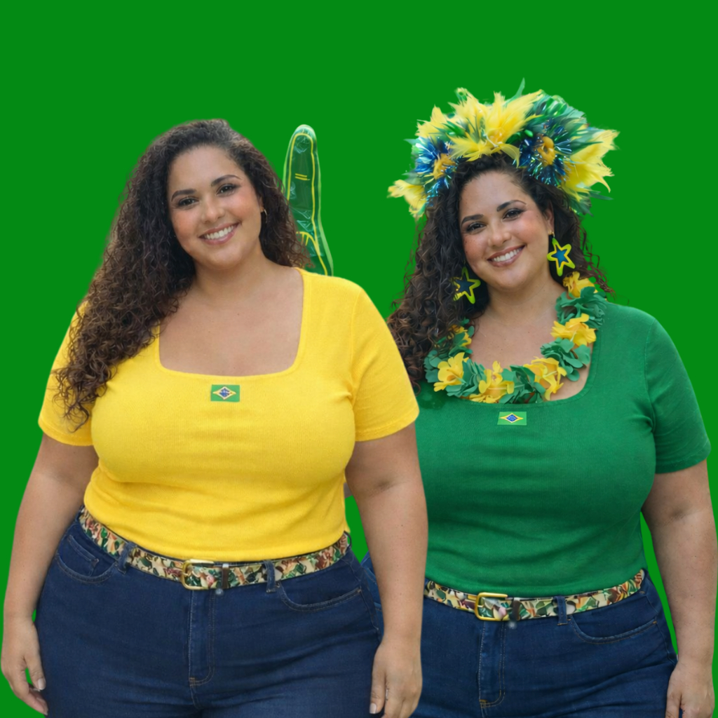 KIT 2 BLUSAS EDIÇÃO ESPECIAL RUMO AO HEXA A nossa queridinha, sucesso absoluto de vendas, agora em dose dupla! Garanta o seu Kit com 2 unidades da Edição Especial e esteja pronta para vibrar com muito estilo, conforto e economia.Unimos a nossa modelagem campeã com a energia Brasilcore para criar o look perfeito que valoriza suas curvas e sua autoestima !Por que este Kit é o seu melhor investimento:QUALIDADE PREMIUM: Tecido em Ribana de Alta Gramatura. Esqueça peças transparentes! Aqui o toque é macio, o material é encorpado e garante ZERO TRANSPARÊNCIA. MODELAGEM REAL PLUS SIZE (44 ao 54): Feita para valorizar, não para apertar. O decote quadrado traz modernidade e elegância .MÁXIMA ELASTICIDADE: A ribana se adapta ao seu corpo e não deforma após a lavagem. DETALHES EXCLUSIVOS: Possui forro no busto para maior segurança e o detalhe discreto da bandeirinha (estilo Brasilcore) .VERSATILIDADE: Perfeita para torcer na Copa, mas discreta o suficiente para o trabalho (fica linda sob blazer) ou dia a dia.Guia de Tamanho sConfira a tabela de medidas disponível nas fotos do anúncio para comprar sem erro! ESTOQUE LIMITADO: Por ser um Kit de edição especial, as unidades voam. Garanta o seu agora e esteja pronta para gritar GOOOOL com o melhor look em dobro!