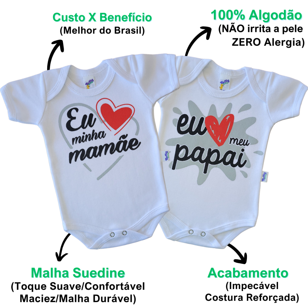 Kit 2 Body Bebê Eu Amo Mamãe e Eu Amo Papai Frase Divertido Infantil 100% Algodão Bori Recém Nascido