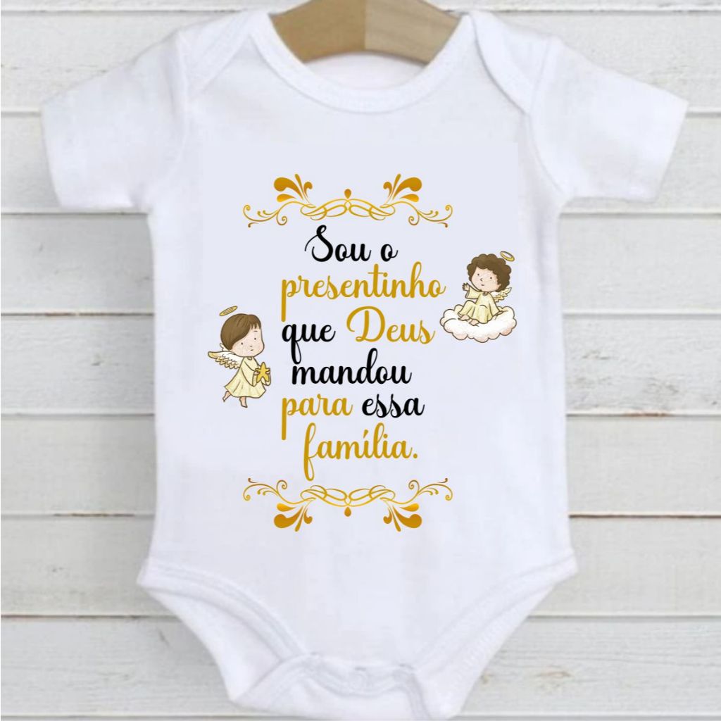 Kit com 2 Body de Bebe com frase de Deus Especificações do Body: Tecido: Malha 100% Poliéster Cor: Branca Estampa Sublimada Toque macio e confortável, Excelente Qualidade e Durabilidade, Estampa não deixa Relevo, Pois penetra diretamente nas fibras do tecido, Não desbota e não racha. Tamanho aprox. do Body: Quantidae de Body 2 unidades - Utilize as medidas nas fotos do anúncio para escolher o tamanho desejado, Dúvidas estamos à sua disposição!