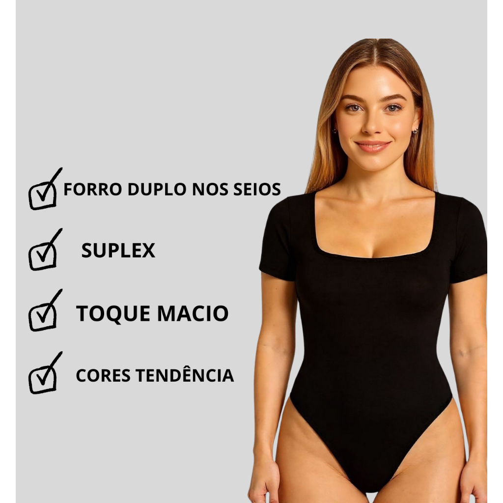 Kit 2 Body Feminino Decote Quadrado Manga Curta Forrado Confortavel tendencia Moda Blogueira Casual