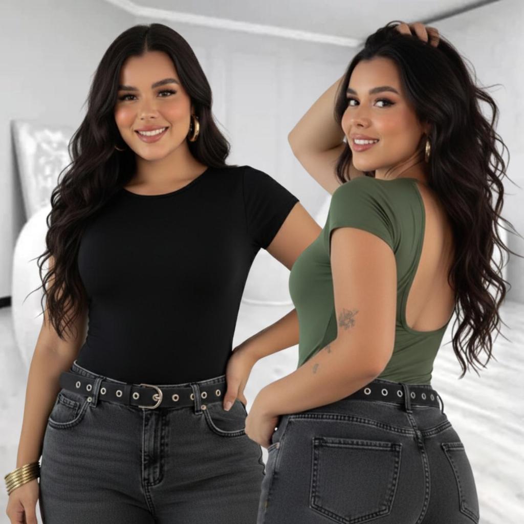 Sabe aquela peça que resolve o look em 1 minuto e ainda te deixa elegante? Esse body feminino manga curta foi feito para valorizar a silhueta com um caimento firme e confortável, e o grande destaque é o decote profundo nas costas, que entrega um visual moderno e sensual na medida certa. O tecido é macio, leve e com elasticidade, se ajusta ao corpo sem apertar e sem incomodar, perfeito para usar o dia inteiro. Ele combina com tudo: jeans para um visual casual, alfaiataria para um look mais arrumado, saia ou couro para uma produção poderosa à noite. A modelagem abraça as curvas, marca a cintura com elegância e o acabamento é bem feito, com costura reforçada e tecido que não marca fácil, trazendo mais segurança na hora de vestir. Tamanho único com ótimo ajuste, veste do 36 ao 42 graças à elasticidade. Medidas aproximadas: busto 80 a 98 cm, cintura 60 a 80 cm, quadril 84 a 102 cm. Cores disponíveis: Preto, Marrom, Rosa, Verde, Azul, Branco e Vermelho. Dúvidas comuns: ele não marca o corpo como tecido fino, porque é encorpado e tem elasticidade na medida certa. Dá para usar com sutiã, mas como o decote nas costas é profundo, o ideal é sutiã adesivo ou sem alças. É confortável para o dia todo e funciona em várias ocasiões, do trabalho ao passeio e eventos. Em algumas cores, pode ser enviado o modelo sem abertura no entrepernas, pensado para mais conforto em quem prefere assim, conforme o lote disponível. Escolha sua cor e garanta o seu agora para transformar qualquer produção com praticidade, estilo e um toque de impacto nas costas. Compre já e eleve seus looks.