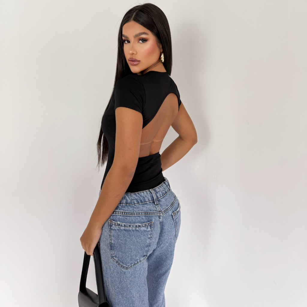 Kit 2 Body Feminino Manga Curta Costa Nua Forro Duplo Suplex