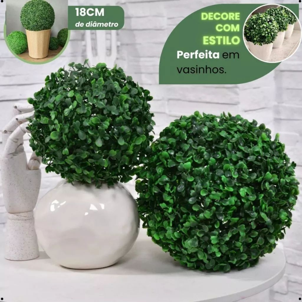 | Kit 2 Bola Buchinho Artificial Verde 18cm Decoracao Grama Buxinho P... este produto | R$ 28,90 | 19% | 5.0/5 | 8 |