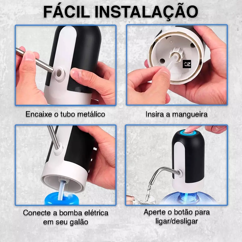 💧 Bombinha Elétrica para Galão D'Água com Suporte – Compatível com Galões de 5L, 10L e 20L Praticidade e economia na hora de beber água! Tenha mais comodidade no seu dia a dia com essa bombinha elétrica portátil, ideal para uso em casa, no escritório, comércios ou em ambientes externos. Basta encaixar no galão, apertar um botão e pronto: a água sai de forma automática, sem esforço! ✅ Principais Vantagens: Fácil de usar: Instalação rápida e simples, sem necessidade de ferramentas. Compatível com galões de 5L, 10L e 20L. Portátil e recarregável via USB: Bateria de longa duração, ideal para levar para qualquer lugar. Design moderno e compacto: Ocupa pouco espaço e combina com qualquer ambiente. Bomba silenciosa e potente: Enche um copo em segundos. Acompanha suporte de fixação e válvula de encaixe: Maior estabilidade e vedação perfeita. 📦 Conteúdo da Embalagem: 1x Bombinha Elétrica 1x Mangueira de Silicone 1x Tubo de Sucção 1x Cabo USB para recarga 1x Válvula de vedação ⚙️ Especificações Técnicas: Material: Plástico ABS + Aço Inoxidável + Silicone Alimentar Alimentação: Bateria recarregável via USB Tempo de carga: 3 a 4 horas Autonomia: Até 6 galões por carga completa 🛒 Garanta já a sua! Leve mais praticidade para sua rotina com essa solução moderna e higiênica para consumo de água. Envio rápido e produto com qualidade garantida!