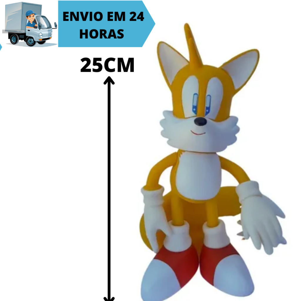 - Enviamos sua compra em até 24h - Fotos reais do produto não seja enganado! :: DESCRIÇÃO DO PRODUTO ABAIXO (leia toda a descrição antes de comprar) Kit 2 Bonecos Sonic E Tails 28cm Collection Grandes Articulado Super Size Sonic World Brinquedo .Produzido em PVC de ótima qualidade e serve como item de colecionador, decoração (Fica em pé) ou para brincar e divertir.. .Se você nasceu jogando esse clássico ou em algum momento da vida já tinha ouvido nesse personagem, esse produto é para você, o Sonic é um ouriço azul, ele com seus aliados tentam salvar o mundo de várias ameaças vindas do gênio do mal mais conhecido como Dr. Ivo Eggman Robotnik...O Dr Eggman ou Dr Robotnik, tem como objetivo de governar o mundo, mas primeiramente, ele tenta destruir o Sonic e adquirir as poderosas Esmeraldas...Venha conhecer de perto esse personagem, tenho certeza que você vai adorar. marca