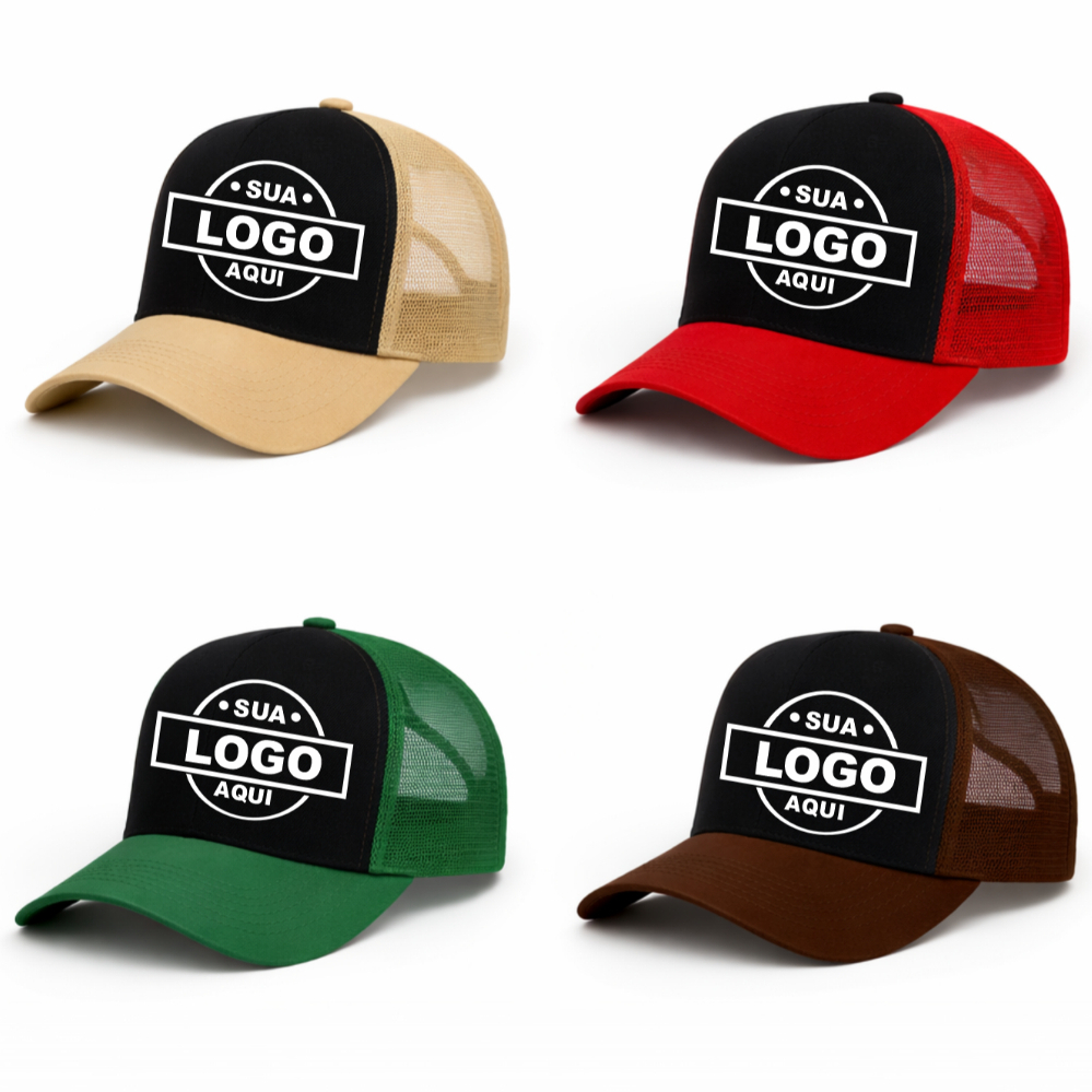 Kit 2 Bonés Trucker Super Cap Material: 100% poliéster Aba: Curva MODELOS : * Frente * Frente + Uma Lateral * Frente + Duas Laterais - A personalização é feita em bordado com a medida de até 6cm x12cm no máximo. - Os bonés possuem na aba 6 costuras reforçadas - Tela resistente Super Confortável - Regulador de plástico de alta resistência e ajustável - Todas as fotos de nossos produtos são reais - Um boné exclusivo personalizado e com garantia de qualidade Após fechado o seu pedido nos envie seu logo ou o que vai ser personalizado no chat, nos formatos, jpg, png ou pdf, para que possamos agilizar seu pedido. Orientações de limpeza do produto * Utilize um pano úmido e sabão neutro; * Aplique o sabão neutro sem excesso no boné; * Após, aplique um pano úmido para retirar o sabão; * Depois use um pano seco para secar o boné; * Secar a sombra Informações sobre o Bordado Lateral * Possui 1,5 cm de altura e 6 cm de comprimento; * Somente um Numero ou Nome ATENÇÃO ! * Caso sua imagem tiver muitos detalhes seu pedido sera feito em DTF impressão digital * Caso tiver duvidas, Mande sua imagem pelo Chat antes da compra Qualquer duvida consultar no campo de perguntas. Obrigado pela prefrência e boa compra!