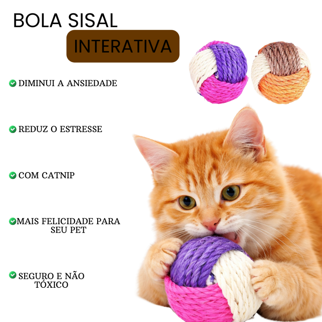 🐱KIT 2 Brinquedo Bolinha de Sisal com Catnip para Gatos | Estímulo, Diversão e Bem-Estar Agrade o seu pet com o Brinquedo Bolinha de Sisal com Catnip, desenvolvido para estimular o instinto natural de caça, reduzir o estresse e proporcionar momentos de pura diversão ao seu gatinho. Produzida com material de alta qualidade, a bolinha é envolta em sisal resistente, ideal para morder, arranhar e brincar. Em seu interior contém Catnip (Erva de Gato), que desperta ainda mais interesse, incentivando a brincadeira ativa e prolongada. ⭐ BENEFÍCIOS & VANTAGENS – Contém Catnip (Erva de Gato), altamente atrativo – Estimula o instinto natural de caça e brincadeira – Ajuda a reduzir estresse, ansiedade e tédio – Contribui para o bem-estar físico e mental do gato – Material resistente e seguro – Ideal para brincadeiras individuais 🐾 MODO DE USAR – Ofereça a bolinha ao gato em ambiente seguro – Estimule a brincadeira rolando ou lançando o brinquedo – Deixe disponível para o pet brincar livremente – Recoloque após o uso para manter o interesse 🎯 PARA QUEM SE DESTINA – Gatos de todas as idades – Pets que ficam sozinhos por longos períodos – Tutores que buscam estímulo e enriquecimento ambiental 📦 ITENS INCLUSOS – 2x Bolinha de Sisal com Catnip (Erva de Gato) 📏 ESPECIFICAÇÕES TÉCNICAS – Tipo: Brinquedo para gatos – Material: Sisal + Catnip – Diâmetro aproximado: 5,5 cm – Produto atóxico ⚠️ OBSERVAÇÕES IMPORTANTES – Produto exclusivo para animais domésticos – Uso supervisionado é recomendado – Nenhum brinquedo é 100% indestrutível – Imagens meramente ilustrativas ❓ DÚVIDAS FREQUENTES (FAQ) – Possui Catnip de verdade? Sim! O brinquedo contém Catnip (Erva de Gato) em seu interior. – Serve para filhotes? Sim! Indicado para gatos filhotes e adultos. – Ajuda a reduzir o estresse? Sim! O Catnip estimula a brincadeira e auxilia no alívio do tédio e da ansiedade. 🛒 AGRADECIMENTO – NARGZEN SHOP Obrigado por escolher a Nargzen Shop 💙 Aqui você encontra produtos que proporcionam diversão, estímulo e bem-estar para o seu pet! 🚚 Envio rápido em até 24 horas após a confirmação do pedido!