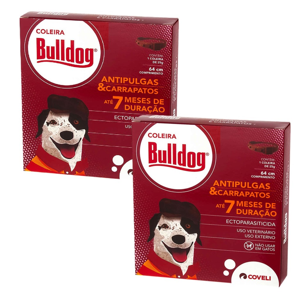 | Kit 2 Bulldog Coleira Antipulgas e Carrapatos Coveli para Cães - 64 cm este produto | R$ 61,66 | 19% | 4.8/5 | 13 |