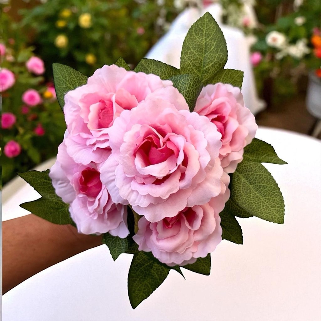 Kit 2 Buquês de Rosas Flores com Folhas Artificiais Decoração