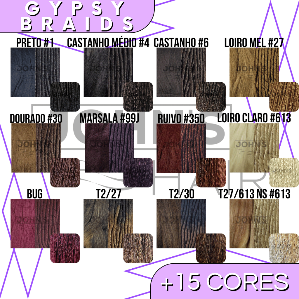 AVISO: NÃO EFETUAMOS TROCA DE CORES OU QUANTIDADE, O ENVIO É FEITO CONFORME A COR SOLICITADA NA VARIÁVEL DO PEDIDO!!! O Kit contém 2 pacotes de jumbo e 1 pacote de Nina Softex + Anéis para trança Enviamos seu pedido para a transportadora em até 48 horas úteis após o pedido ser aprovado. Embalagem do Jumbo contém 800 Gramas (2 Pacotes) + 100 Gramas do pacote Nina Softex Possui 82 centímetros (Jumbo) Possui 70 centímetros (Nina) Vai solto (fio a fio) pronto para ser trançado Métodos de colocação: Gypsy Braids, Twist, Crochet, Tranças em geral OBS: Foto da modelo meramente ilustrativa, verifique com sua trancista ou profissional da área o método de colocação semelhante. Gypsy Braids Knotless Braids Cabelo Sintético Jumbo Jumbão Super X Tranças Box Braid Fibra Especial Kanekalon Dread Nina Crochet