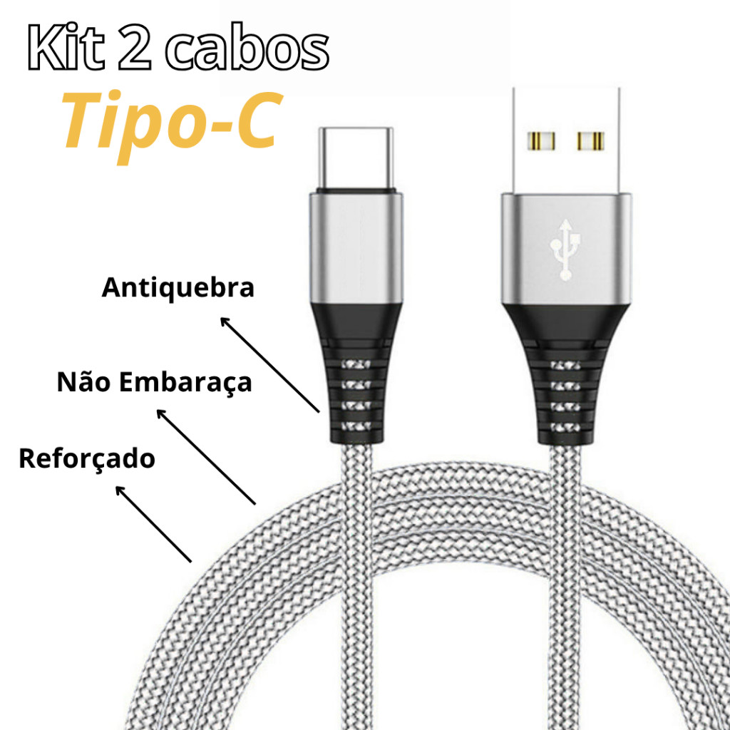 Kit 2 Cabo Tipo C Usb Carregador Ultra Rápido 2 metros Resistente Nylon Anti quebra