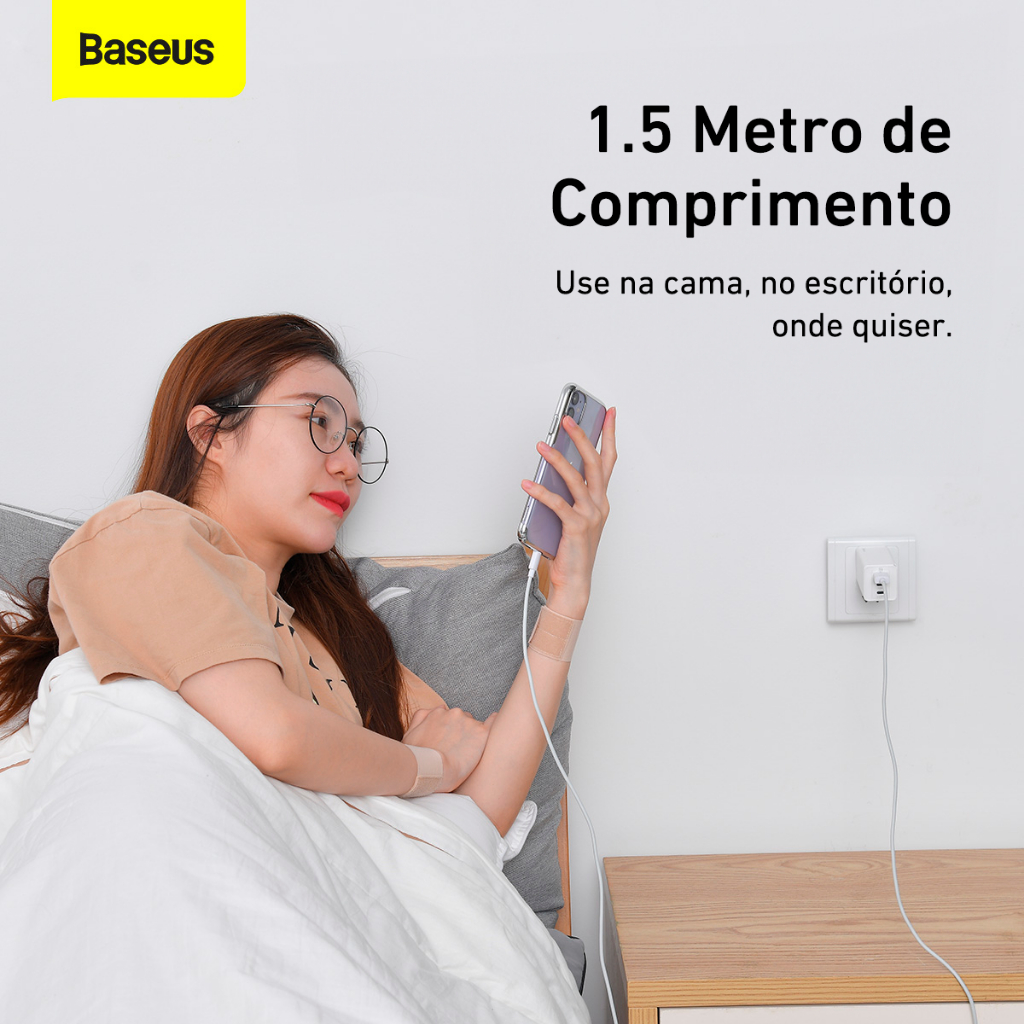 * NOVA LOJA DA BASEUS NO BRASIL * * Mais de 10 Milhões de Vendas em Todo o País*** Sobre a Baseus. A Baseus se origina do nosso valor fundamental, Based on User, "Baseado no Usuário". Somos apaixonados por criar produtos com design minimalistas, fácil de usar e uma textura que atende a todos os nossos clientes. Com mais de uma década focando em produtos eletrônicos para o cotidiano, com muita inovação e criatividade, hoje possuímos inúmeras Patentes, Prêmios Internacionais de Design e uma grande variedade de produtos. ----------------------------------------------------------------------------------------------------------------------- Original, Novo e Lacrado. Envio Imediato para todo o Brasil. Garantia de 12 meses, é só aqui. ----------------------------------------------------------------------------------------------------------------------- Kit 2 Cabos Lightning Baseus Simple Wisdom 2.4a 1.5m Kit Cabo Lightning Baseus Simple Wisdom 2.4A (2 Unidades /Pack1.5m) Branco O cabo de dados Baseus para APPLE (iPhone e iPad) Lightning 2.4A É um cabo projetado para carregar e sincronizar dispositivos da Apple. O comprimento de cada cabo é de 1,5 metros. O acessório suporta fontes de alimentação de até 2.4A e permite a transferência de dados em velocidades de até 480Mbps. Feito de cobre estanhado com isolamento de PVC (PVC), que, mantendo a flexibilidade, garante confiabilidade e durabilidade durante a operação. ----------------------------------------------------------------------------------------------------------------------- Para ver nossa LINHA COMPLETA DE PRODUTOS, clique no link 'VER MAIS ANÚNCIOS DO VENDEDOR' logo abaixo das fotos. Nos chame no Chat da Compra que resolveremos qualquer problema com mais rapidez que o Mercado Livre, temos uma equipe focada apenas no Pós-Venda. As mensagens de compras com mais de 3 meses não estão aparecendo, nos chame no campo de perguntas que entraremos em contato. Atendimento de Segunda a Sexta-feira em horário Comercial, exceto feriados.