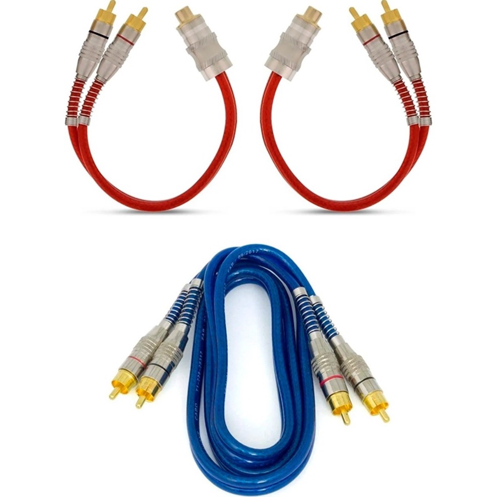 Kit 2 Cabos Y Vermelho + 1 Rca 1 Metro Azul Tech One