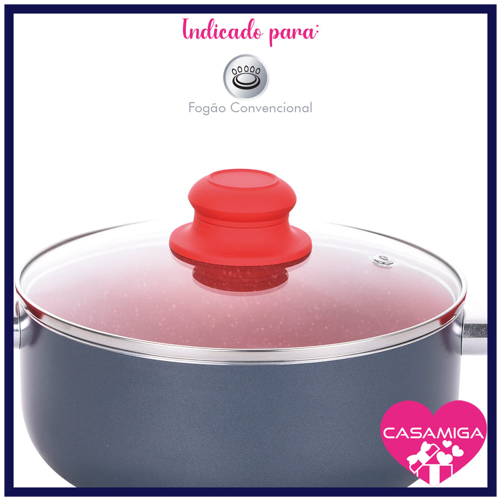 Kit 2 Caçarola Revestimento Cerâmico Onix 1.8mm 22 e 24cm Design moderno, tampas de vidro temperado com saída de vapor e alças em baquelite com revestimento Soft-Touch que garantem conforto e maior segurança. Trata-se de um item de 1.8mm, sendo sua qualidade uma das melhores do mercado; O revestimento cerâmico requer menos óleo para o preparo dos alimentos, não libera metais pesados e elementos químicos no cozimento. Todas as nossas panelas, contam com classificação A no INMETRO. 100% livre de PFOA e PTFE - componentes pejudiciais á saúde. Item antiaderênte indicado para fogões Gás convencionais. Características: Caçarola 22cm - Altura: 9cm - Diâmetro: 22cm - Comprimento c/ cabo: 37cm Caçarola 24cm - Altura: 9cm - Altura c/ Tampa: 16,5cm - Diâmetro: 24cm - Comprimento c/ cabo: 38,7cm - Espessura: 1.8 mm - Material: Alumínio com revestimento cerâmico - Marca: Class Home - Cor: Cinza - Conteúdo: 2 Caçarolas Cuidados antes do uso: Para limpeza utilizar detergente neutro e uma esponja macia. Após unte internamente com óleo e/ou gordura e coloque no fogo baixo por 3 minutos e depois lave a peça, para garantir maior qualidade na antiaderência do produto. Medidas aproximadas. Imagens meramente ilustrativas.