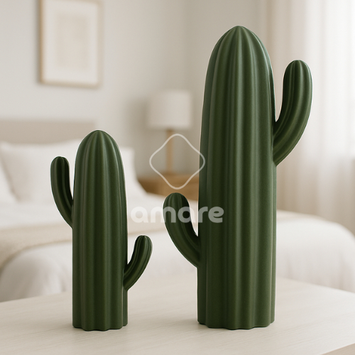 Kit 2 Cactos Decorativos Minimalista – Escultura Moderna de Mesa para Sala, Quarto ou Escritório