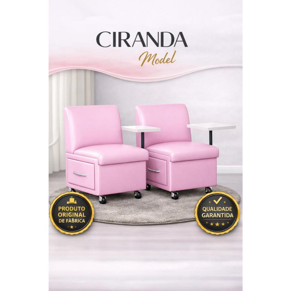 Conforto e Elegância para Seu Salão! Eleve a experiência das suas clientes e otimize seu trabalho com o nosso Kit Cadeira para Manicure e Cirandinha. Projetada para combinar conforto, praticidade e um toque de sofisticação, esta cadeira é a escolha ideal para profissionais que buscam excelência. Cores Disponíveis Rosa Pink: Vibrante e moderna, para um salão cheio de personalidade. Bege: Clássico e discreto, perfeito para ambientes que valorizam a elegância. Branco: Clean e minimalista, ideal para espaços luminosos e amplos. Rosa Bebê: Delicado e suave, cria um ambiente acolhedor e charmoso. Preto: Atemporal e profissional, combina com qualquer decoração. Marrom: Robusto e natural, traz um toque de aconchego. Características que Fazem a Diferença Conforto Ergonômico: O design foi pensado para garantir a melhor postura para você e sua cliente, com espuma de alta densidade no assento e encosto, proporcionando um suporte ideal durante todo o atendimento. Material de Alta Qualidade: Revestida em courvim de primeira qualidade, é fácil de limpar e resistente ao uso diário, mantendo o aspecto de novo por muito mais tempo. A estrutura é feita de madeira ecológica reforçada, garantindo durabilidade e segurança. Praticidade e Funcionalidade: Com rodinhas giratórias 360°, você move a cadeira com facilidade pelo salão. O apoio de mão com regulagem de altura e a gaveta espaçosa em MDF são perfeitos para organizar seus esmaltes e ferramentas, mantendo tudo ao alcance das mãos. Dimensões Otimizadas: Com 76 cm de altura e 50 cm de largura, a cadeira se encaixa perfeitamente em qualquer espaço. Suporta até 150 kg, oferecendo segurança e estabilidade. O que Nossos Clientes Dizem: "Ótima cadeira, super confortável e prática. A gaveta ajuda muito na organização. Chegou rápido e bem embalado." "O material é de excelente qualidade, e a cor é exatamente como na foto. Minhas clientes amaram o conforto!" Informações Importantes Envio Seguro e Rápido: Despachamos seu pedido em até 24 horas. Compra 100% segura através do Mercado de Envios. Montagem Fácil: A cadeira é enviada semi-montada, com as peças (regulador de altura e rodinhas) dentro da gaveta. O manual de instruções incluso torna a montagem simples e rápida. Dica de Limpeza: Para manter a beleza da sua cadeira, limpe o courvim com um pano macio e úmido. O apoio de mão em MDF pode ser limpo com um pano levemente umedecido, evitando produtos abrasivos. Garanta já o seu kit e proporcione a melhor experiência de manicure para suas clientes! Selecione a cor desejada e adicione ao carrinho!