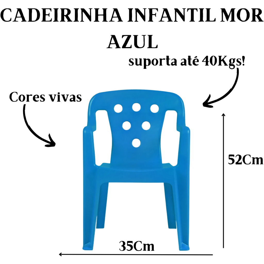KIT 2 CADEIRINHA POLTRONA PLÁSTICA LISA KIDS MOR A nova Poltroninha Mor Kids foi desenvolvida pensando no conforto, lazer e diversão dos pequenos. Os móveis são produzidos em polipropileno com material 100% virgem e possuem proteção contra raios UV, o que garante maior durabilidade.Versátil e prática, a Poltroninha é perfeita para ser utilizada com a Mesinha Mor Kids, formando um espaço colorido e especial para a criançada, além de muito confortável.Ideal para o momento do lanche, dos estudos, das pinturas ou na pausa entre uma brincadeira e outra!O produto é indicado para +2 anos. Especificações: MATERIAL: Polipropileno CAPACIDADE: 40 kg GARANTIA: 90 Dias ALTURA: 52,00 Centímetros LARGURA: 35,00 Centímetros COMPRIMENTO: 36,00 Centímetros PESO: 739,00 Gramas