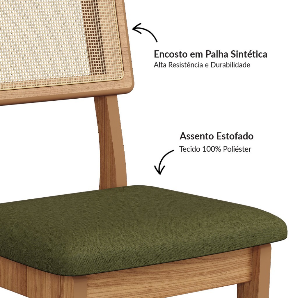 Kit 2 Cadeiras 100% Mdf Estofadas com Encosto em Tela Freijó/Verde J25 - Dalla Costa