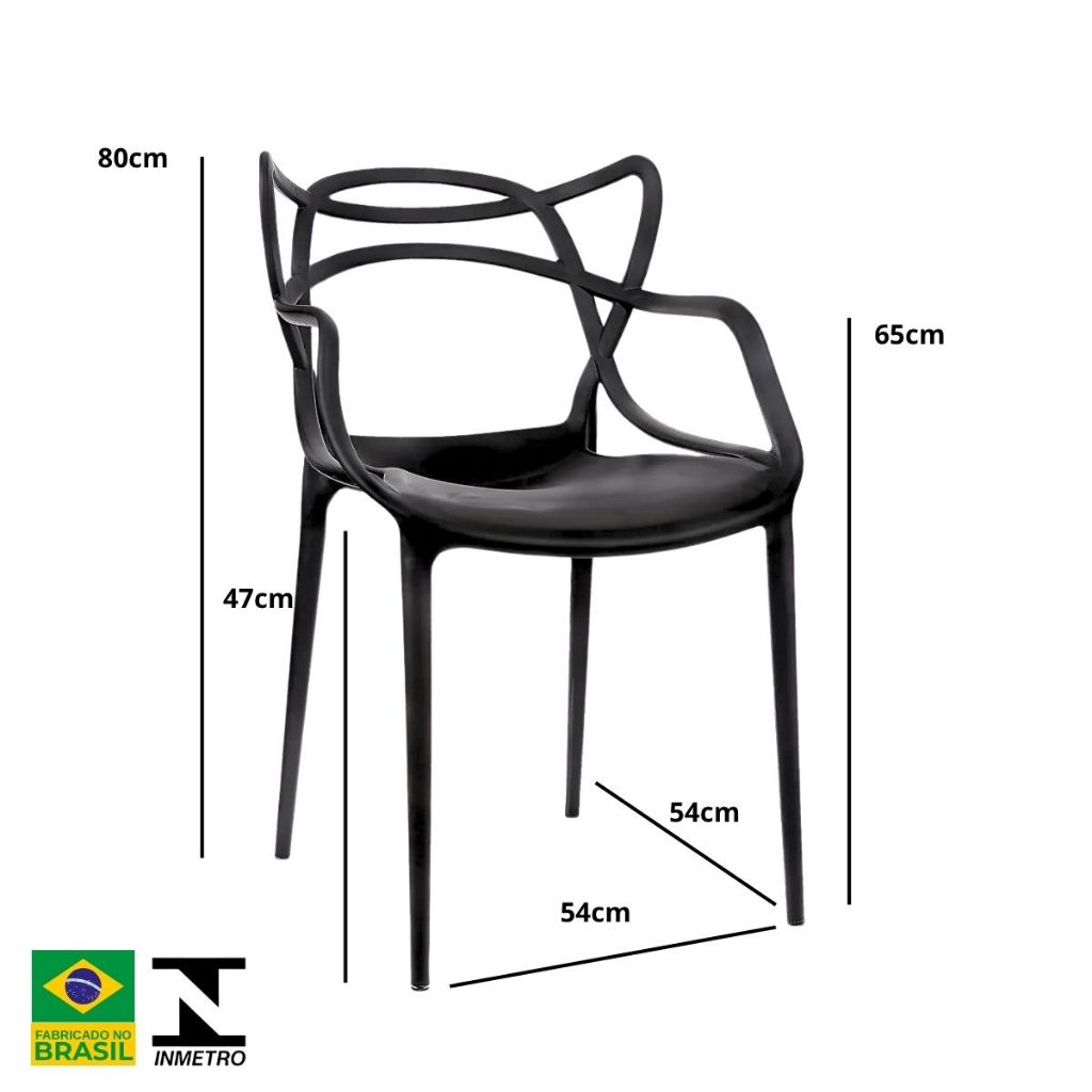 CADEIRA ALLEGRA — DESIGN MARCANTE, CONFORTO E DURABILIDADE A Cadeira Allegra é o toque de estilo que transforma qualquer ambiente. Com linhas curvas, visual leve e estrutura reforçada, ela combina design moderno, resistência e praticidade em uma peça única — perfeita para sala de jantar, varanda gourmet, restaurantes, cafés e espaços comerciais. Diferenciais que fazem a diferença Estrutura monobloco em polipropileno injetado: mais resistente, leve e sem parafusos. Design consagrado, inspirado em um clássico mundial. Certificação INMETRO, garantindo segurança, estabilidade e alta durabilidade. Empilhável e fácil de limpar, ideal para o dia a dia. Uso interno e externo (coberto), com ótima resistência à umidade e ao sol moderado. Suporta até 130 kg com total segurança. Versátil para diferentes ambientes A Allegra se adapta a vários estilos e propostas de decoração. Vai do minimalista ao contemporâneo, combinando conforto, praticidade e visual sofisticado em salas, cozinhas, varandas, escritórios e espaços comerciais. Qualidade Nacional e Acabamento Premium Fabricada no Brasil com processos de alta precisão, a Allegra entrega robustez, longa vida útil e excelente acabamento. Um móvel funcional, elegante e com ótimo custo-benefício para quem busca qualidade de verdade. Especificações Técnicas Modelo: Cadeira Allegra Material: Polipropileno Injetado Estrutura: Monobloco (inteiriça) Certificação: INMETRO Nº CP.007297/2025 Peso Suportado: 130 kg Uso: Interno e Externo (coberto) Empilhável: Sim Medidas Altura: 83 cm Largura: 54 cm Profundidade: 56 cm Altura até o assento: 45 cm Altura até o braço: 66 cm Limpeza e Cuidados Limpar apenas com pano úmido seguido de pano seco. Não utilizar produtos abrasivos ou limpeza a vapor. Uso inadequado pode comprometer o produto e invalidar a garantia. Design que encanta. Conforto que dura. A Cadeira Allegra é a escolha ideal para quem busca beleza, praticidade e resistência em um único produto. Transforme seu espaço com estilo e personalidade.