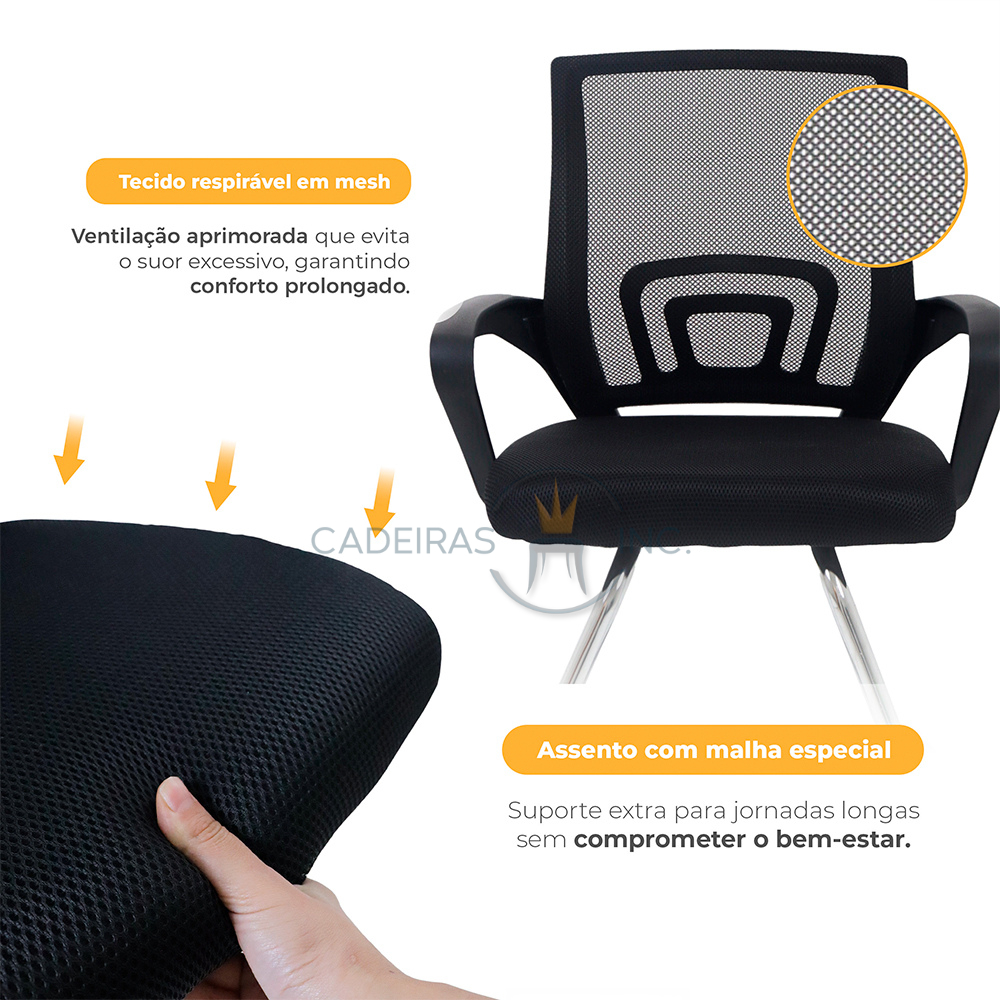 Kit 2 Cadeiras De Escritório Fixa Interlocutor Tecido Tela Mesh Detroit Preta