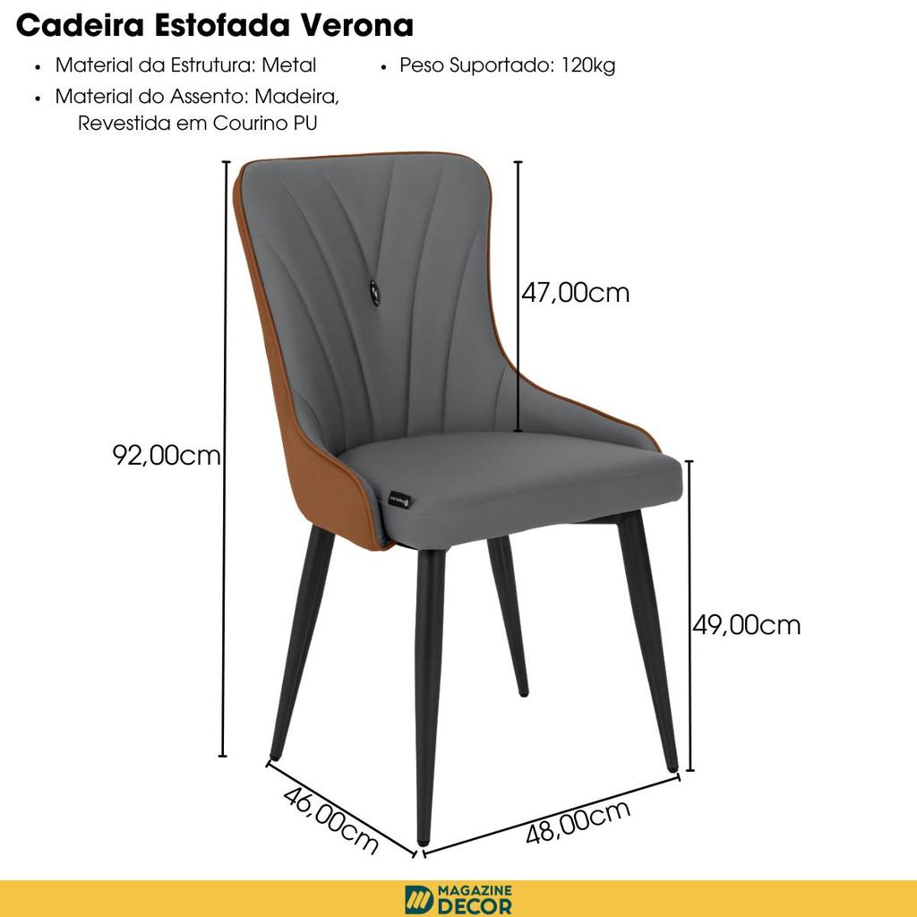 Kit 2 Cadeiras de Jantar Estofada Verona Design Italiano Encosto Anatômico Base Metálica Reforçada