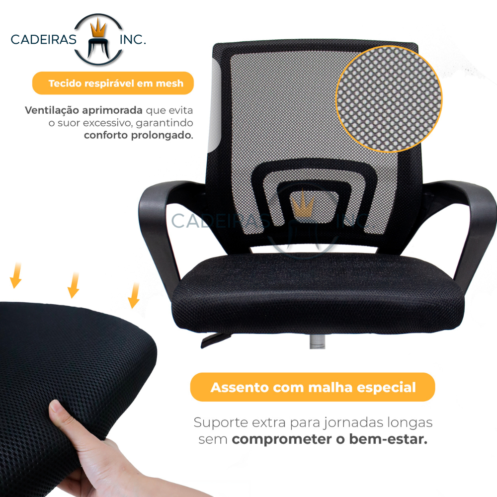 Kit 2 Cadeiras Escritório Diretor Estofadas Tela Mesh Detroit Preto Giratórias com Regulagem