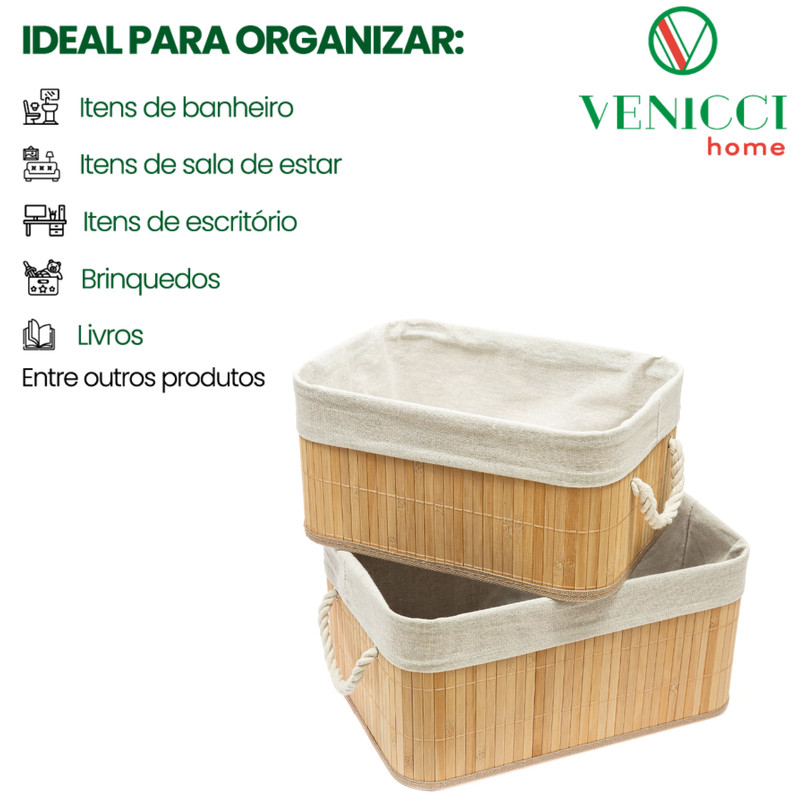 Kit 2 Caixa Cesto Organizador Bambu Natural Revestido com Linho 28 X 18 X 14cm Decoração Organização vale a pena?