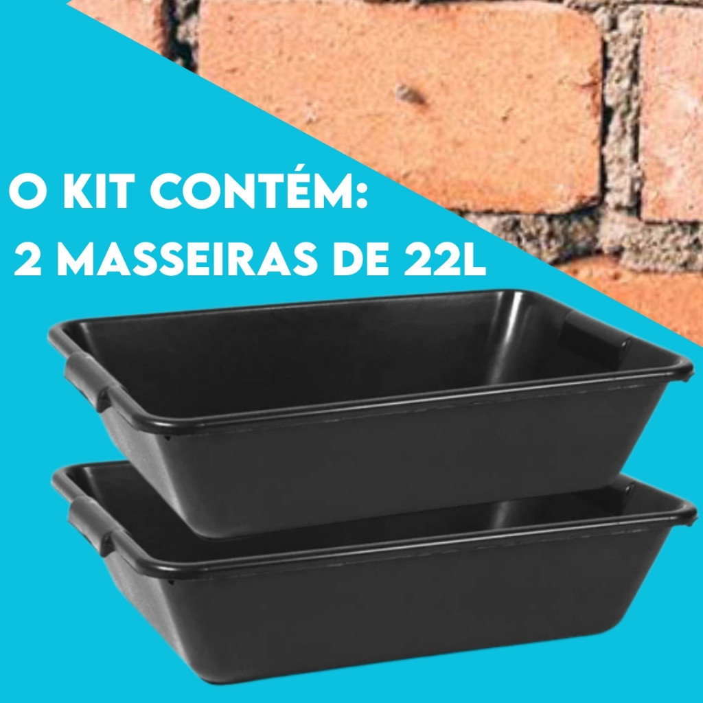 Kit 2 Caixa De Massa Plástica 22L Construção Resistente Lavável Masseira Caçamba Concreto Cimento