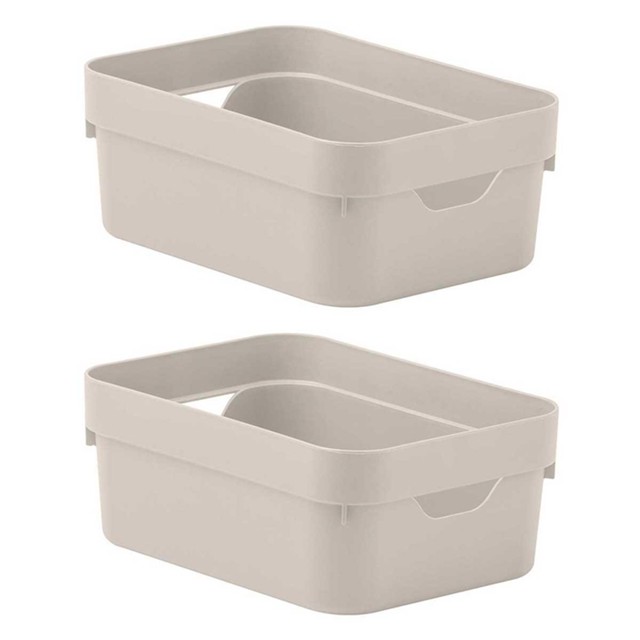Kit 2 Caixa Plástica 2L Organizadora Multiuso OU Cube Bege