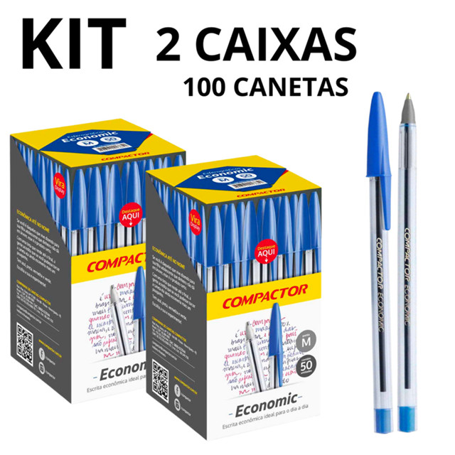 Kit 2 Caixas Caneta Azul Esferográfica Economic 1.0mm 50 unidades Cada - Compactor - 100 Canetas