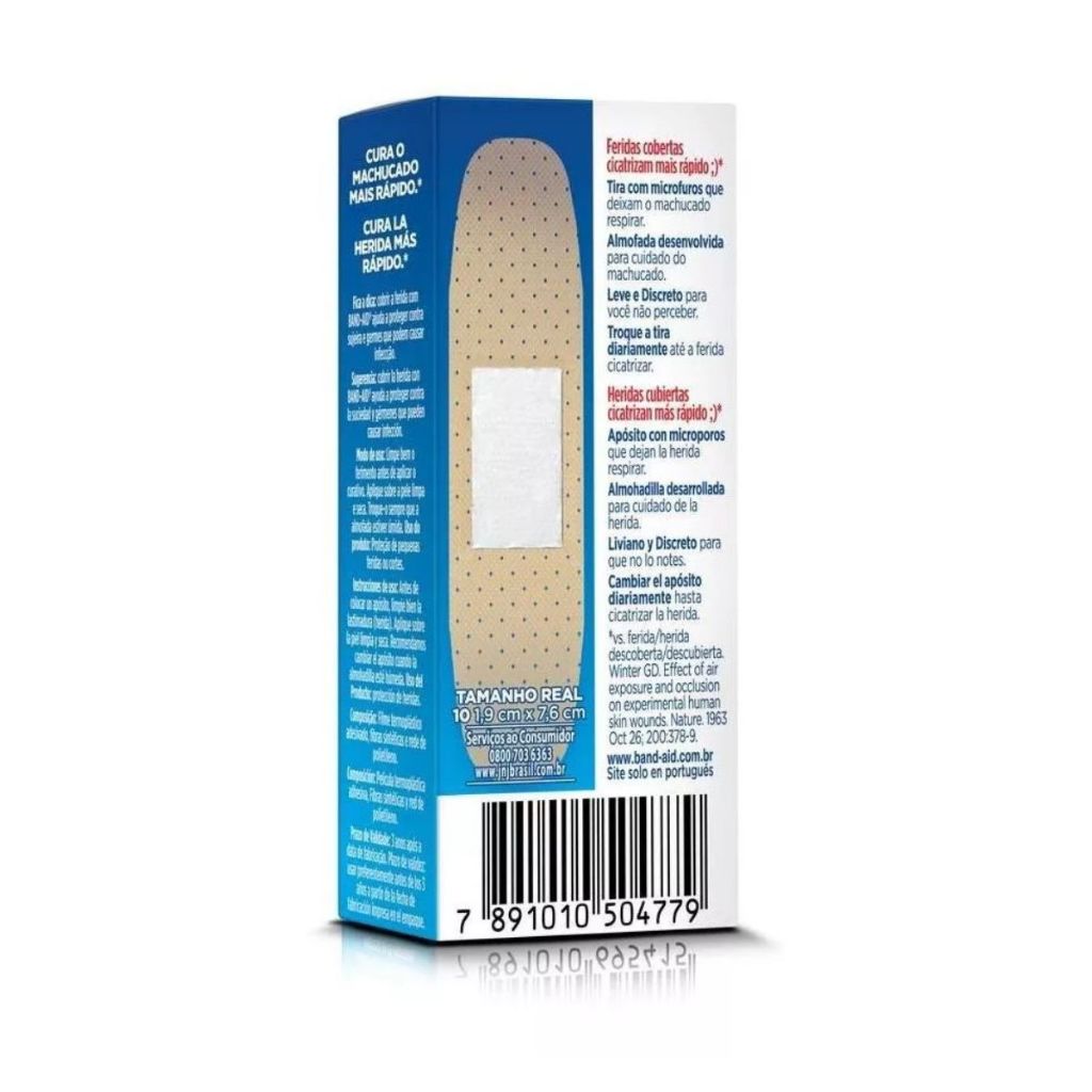 Kit 2 Caixas Curativo Band-Aid Transparente com 10 Unidades Principais Características - Transparente e Discreto: O curativo Band-Aid Transparente é ideal para ferimentos pequenos e médios, proporcionando um aspecto invisível e discreto na pele, para que você possa se sentir seguro sem chamar atenção para a lesão. - Fácil Aplicação: A embalagem prática contém curativos adesivos que aderem facilmente à pele, proporcionando conforto e proteção sem incomodar. - Alta Proteção: Sua cobertura é impermeável, mantendo os ferimentos protegidos da água, sujeira e bactérias, favorecendo uma cicatrização mais rápida e segura. Benefícios - Atenção ao Conforto: Proporciona um ajuste perfeito, permitindo mobilidade sem perder a adesão. - Cicatrização Eficiente: Mantém a umidade no ferimento, criando um ambiente ideal para a recuperação da pele. - Praticidade: Perfeito para ser utilizado em qualquer lugar e a qualquer hora, com curativos já prontos para aplicação, sem necessidade de cortes ou ajustes. Diferenciais do Produto - Design Discreto: Seu material transparente permite que a pele respire e que a ferida seja mais difícil de ser notada, oferecendo um acabamento discreto. - Marca Confiável: Band-Aid é uma marca renomada mundialmente, sendo uma das primeiras opções quando o assunto é curativo seguro e eficaz. - Resistente e Durável: Proporciona uma longa duração de proteção sem que o curativo precise ser trocado com frequência. Especificações Técnicas - Peso: 18g (aproximadamente). Instruções de Uso - Lave bem a área afetada e seque antes de aplicar o curativo. - Retire o curativo da embalagem e aplique-o diretamente sobre a ferida. - Pressione levemente nas extremidades para garantir a aderência total. - Troque o curativo conforme necessário, especialmente se ficar sujo ou umedecido. Avisos e Precauções - Não use em ferimentos graves ou profundos. - Caso haja irritação ou alergia, interrompa o uso e consulte um médico. - Mantenha fora do alcance de crianças. O que está incluso? - 2 caixas curativos Band-Aid transparente com 10 unidades cada. DÚVIDAS FREQUENTES Os produtos são originais? Sim. Todos os nossos produtos são originais. Emitem nota fiscal? Sim. Emitimos nota fiscal para todos os pedidos.
