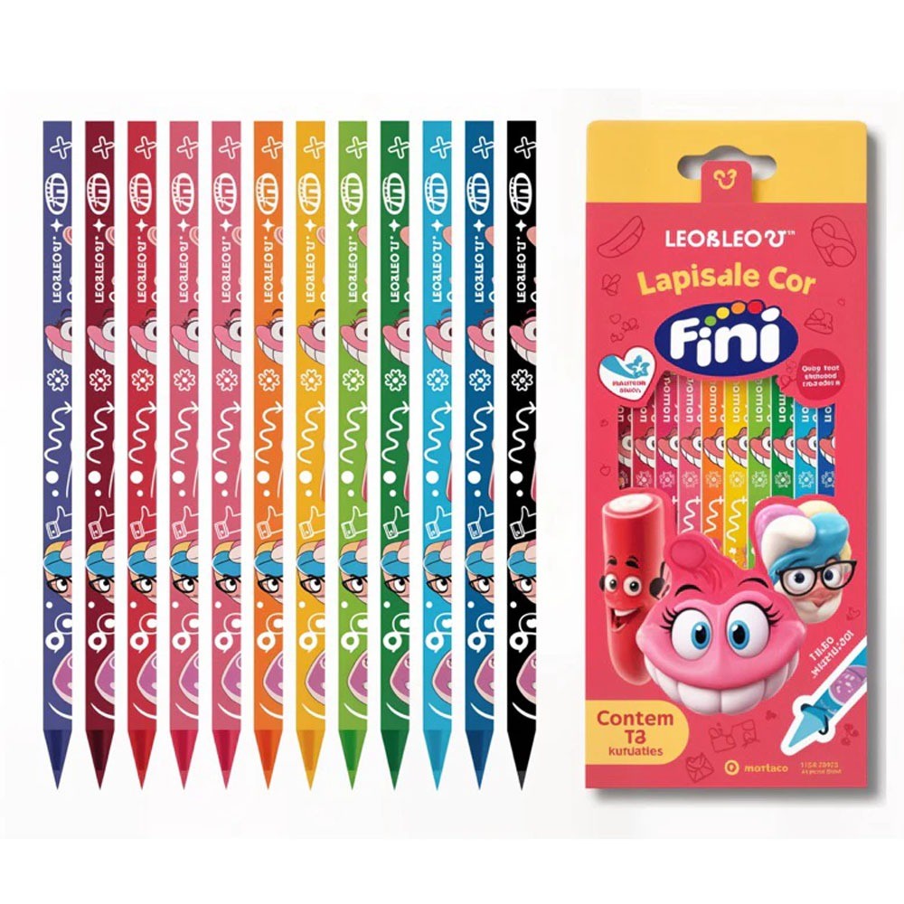 Kit 2 Caixas de Lápis de Cor Triangular Estampado Fini - Caixa com 12 Unidades Leo&Leo