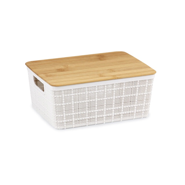 Kit 2 Caixas Organizadoras 12 Litros Branca C/ Tampa Bambu