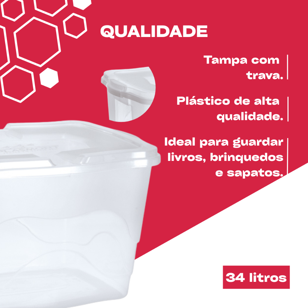 Kit 2 Caixas Organizadoras 34L Transparente de Plástico Brinquedos Roupas Livros