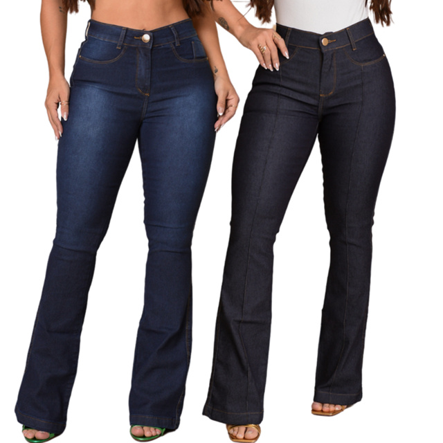 Kit 2 Calça Flare Jeans Premium Empina Bumbum Com Elastano Boca De Sino